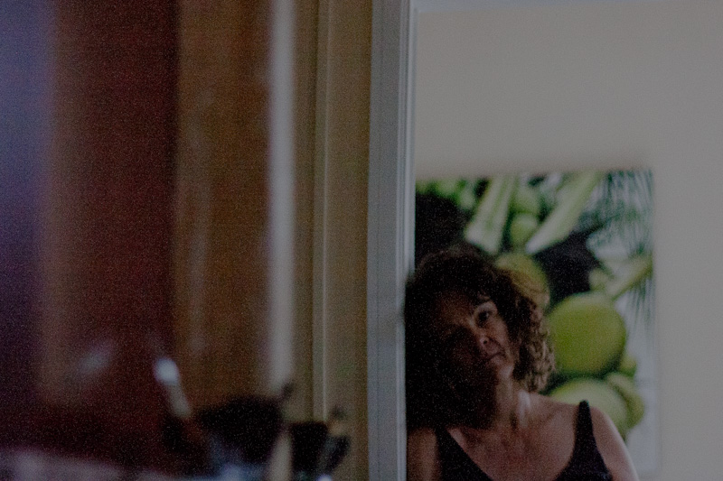 The next time I tried it was very early in the morning, still in my PJ’s, in the bathroom mirror. This time I managed not to make funny faces or hide behind anything. It was pretty dark and I had to use a high ISO to gather as much light as possible, this gives the images a grainy look that is not unpleasing. I used the multi-point focus instead of the single focus point, I didn’t use a tripod and I hand-held the camera, all these factors affected the focus and the resulting pictures are not very clear. Not stunning shots but they seem to “express” more than the first two images and I’m also proud of me for being so audacious! As my Irish father would say, “Amn’t I good?”