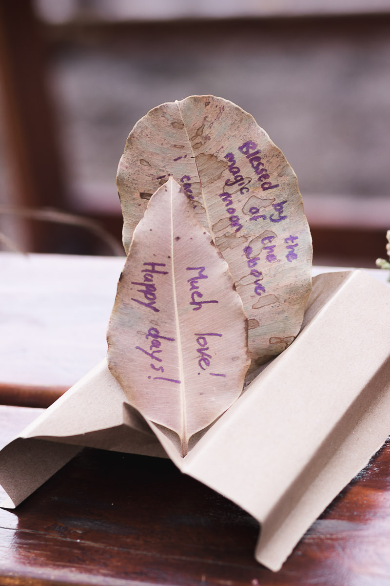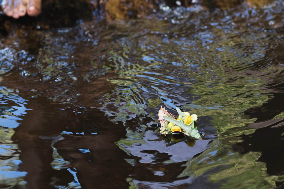 Then it was time to write messages of hope and love for the couple and send them lovingly down the river on paper boats and rafts made from wood, leaves and flowers.