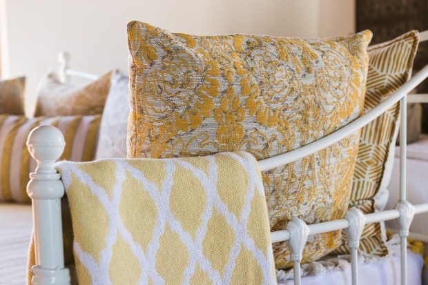Once inside, rich colours are everywhere; genius pairing of unlikely hues such as bright orange cushions on a lime green couch is a delight. Atop tables, shelves or window ledges, eye catching and interesting vignettes of unusual objets d’art are tastefully arranged.